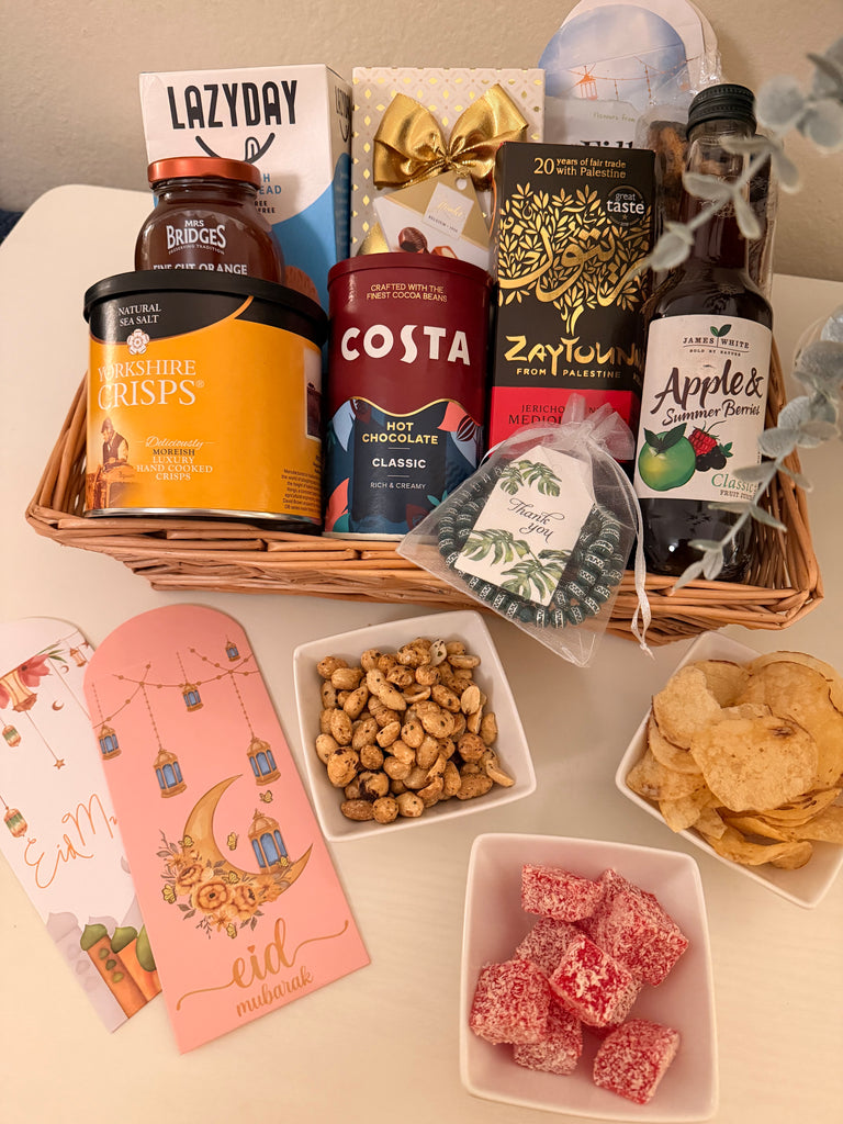 This beautifully presented willow basket; comes with a wonderful selection of delectable delights to enjoy. A beautiful addition for your Eid celebration.
